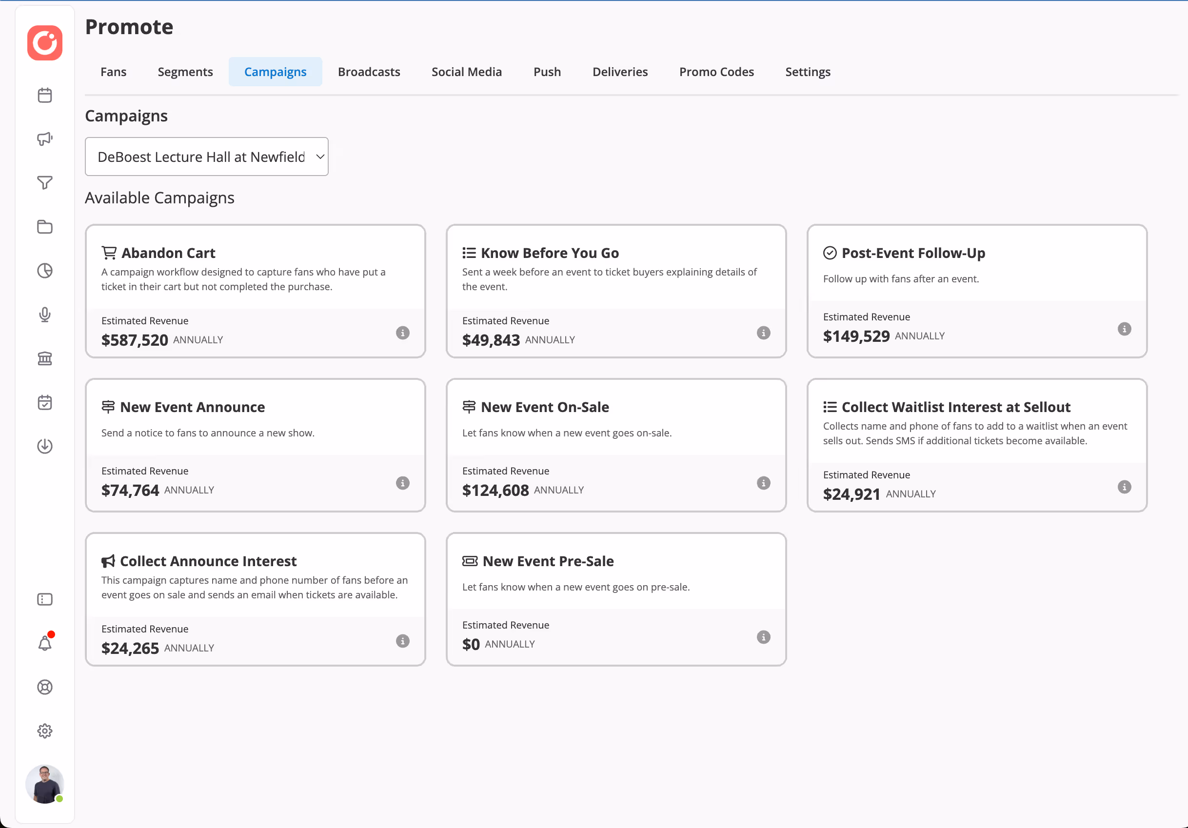 You can now leverage automated fan marketing that works while you are sleeping. Waitlist signup emails for when inventory becomes available, abandoned carts bring potential fans back into the fold, and post-show follow-ups maintain momentum. Every campaign combines smart audience segments with proven venue marketing layouts—all without you lifting a finger.