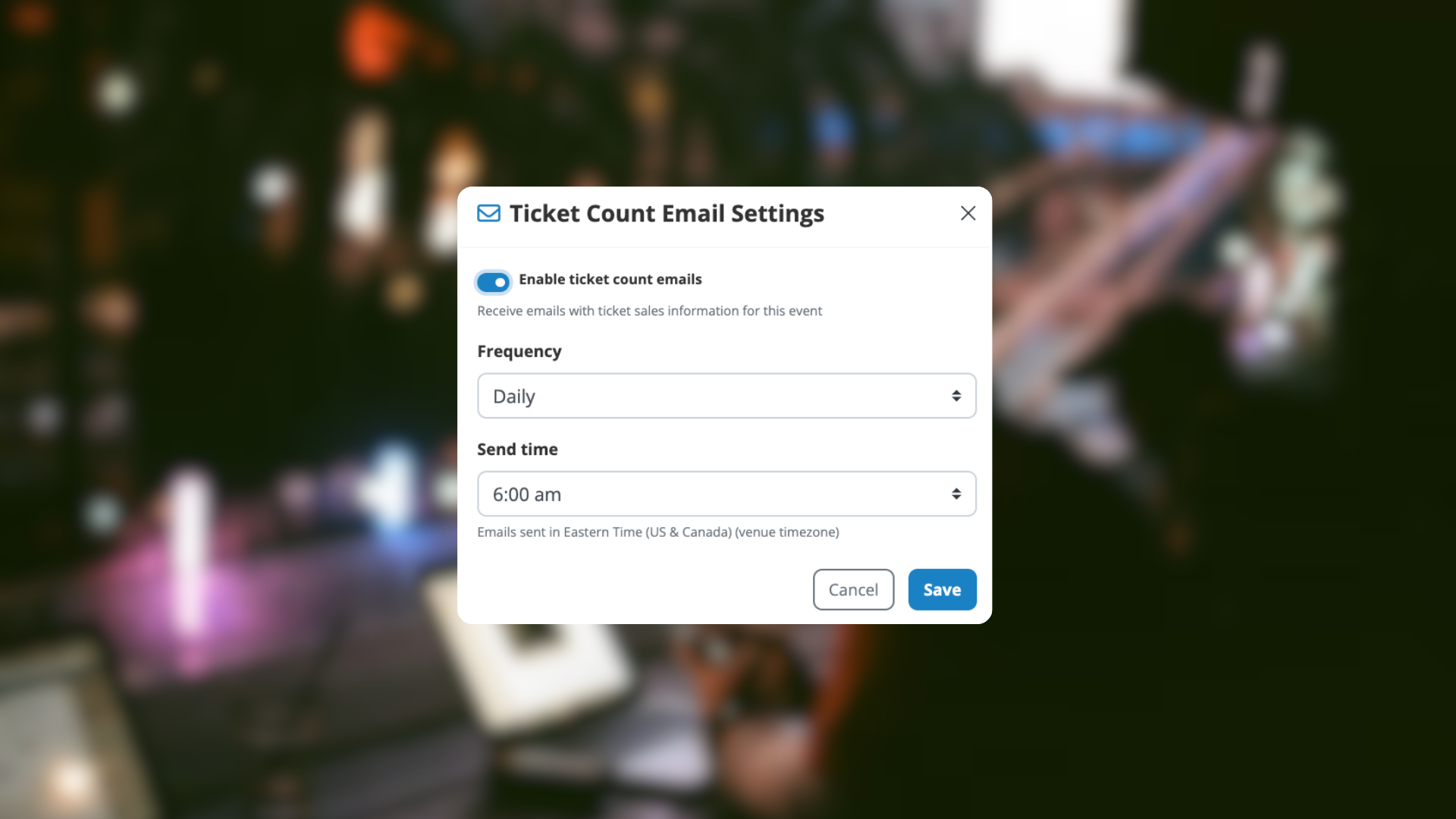 With our latest update, you can now customize who receives ticket counts and when they receive them, instead of relying on a fixed daily send. This gives you more flexibility to match how your team, partners, and promoters actually work.
