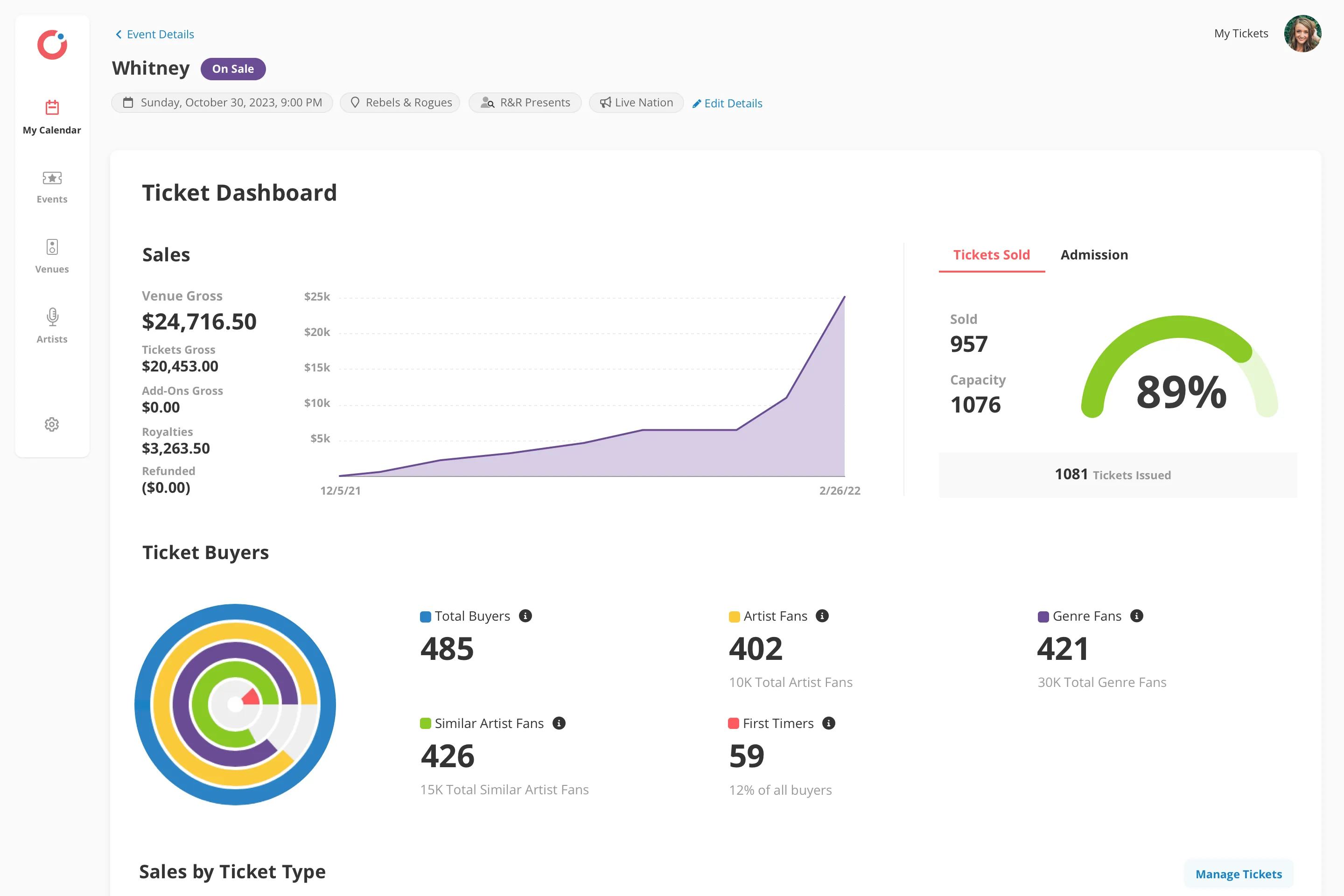 Your calendar, holds, offers, and artist management in one place. Make decisions based on data, not gut feel and email chains.